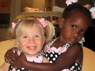 One of the sweetest things about Lillie is how affectionate she is. As soon as she sees the kids in the morning, she says, "I ont kiss!" or "I ont love." She gets so excited each time she sees Zoe, and she can't wait to smooch all over her too! Each night after we read, I rock her to sleep, and sometime before she drifts off, she scoots off my shoulder and reaches up to give me kisses. I'm sure that there have been nights when I was ready for her to go on to sleep, but for the most part, that time with her is one of the most precious parts of my day. It's impossible to spend that quiet half hour with Lillie without feeling like the luckiest woman in the world.